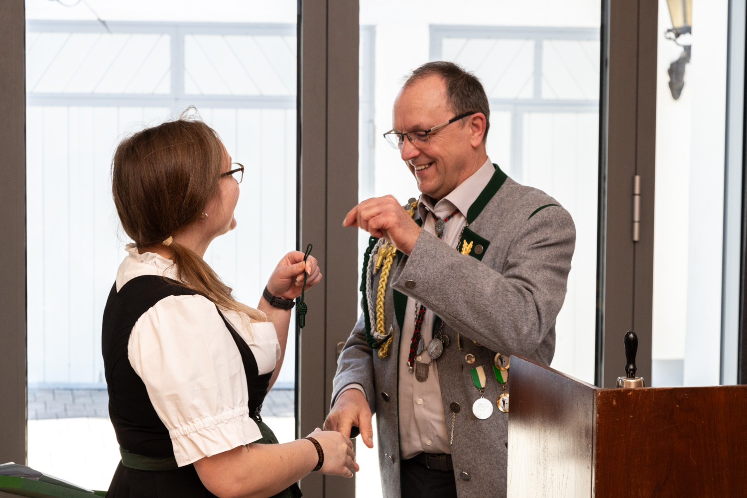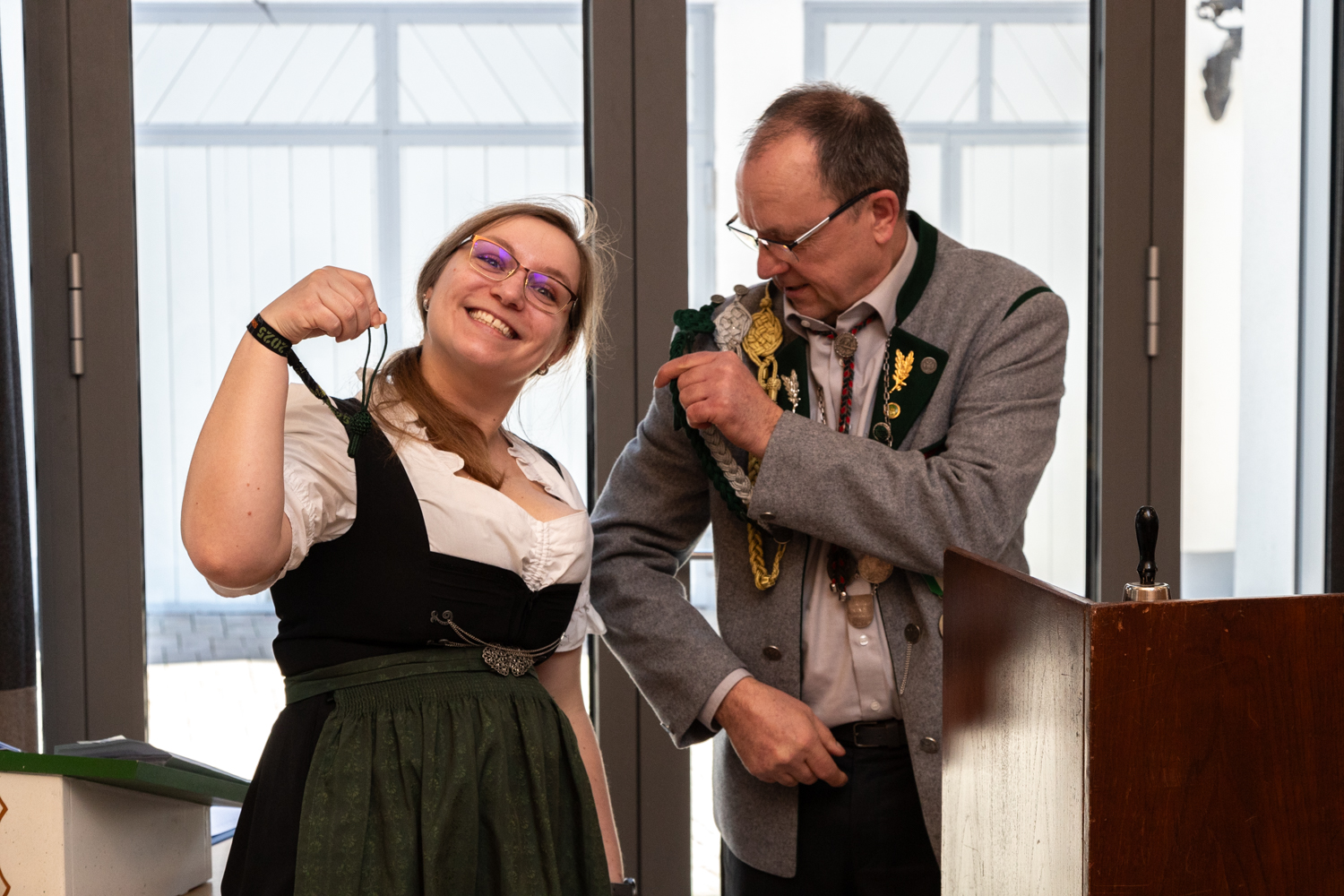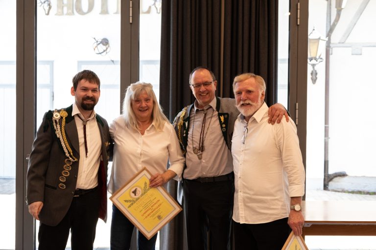 Es ging mit den Ehrungen für sportliche Leistungen weiter. So wurde Diana Warmuth für einen Gesamtdurchschnitt von 356,9 Ringen in den Rundenwettkämpfen der Gauoberliga mit der Eichel in Grün ausgezeichnet.