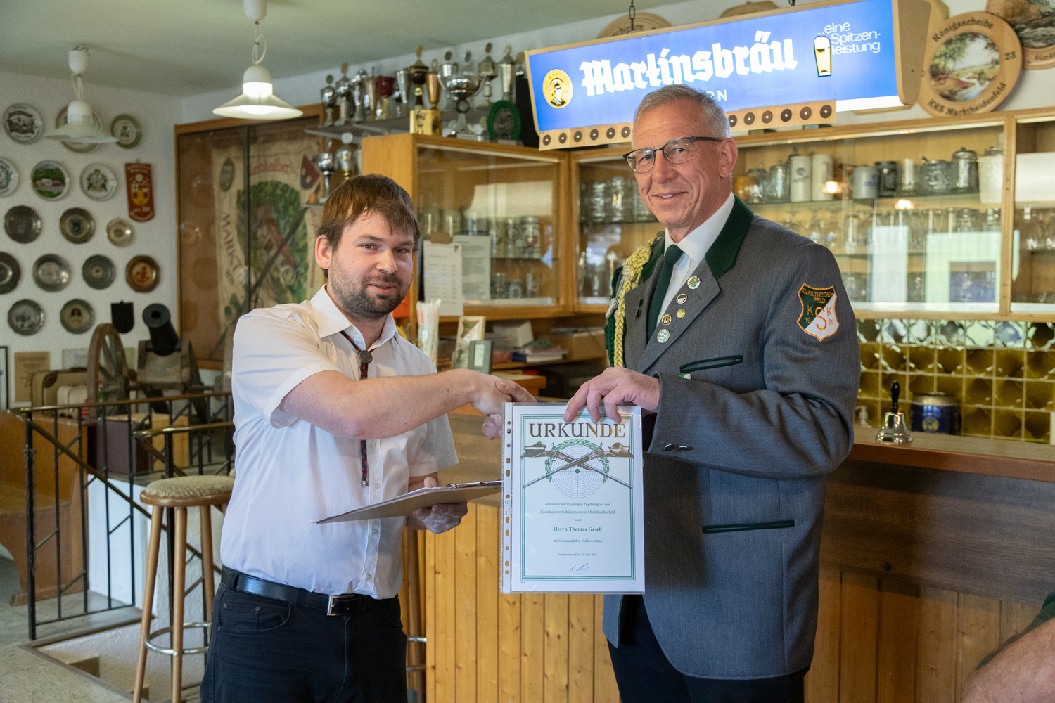 Neben den Ehrungen zum Königsschießen wurde Thomas Gesell nachträglich zu seiner 50-jährigen Mitgliedschaft bei uns im Verein ausgezeichnet.